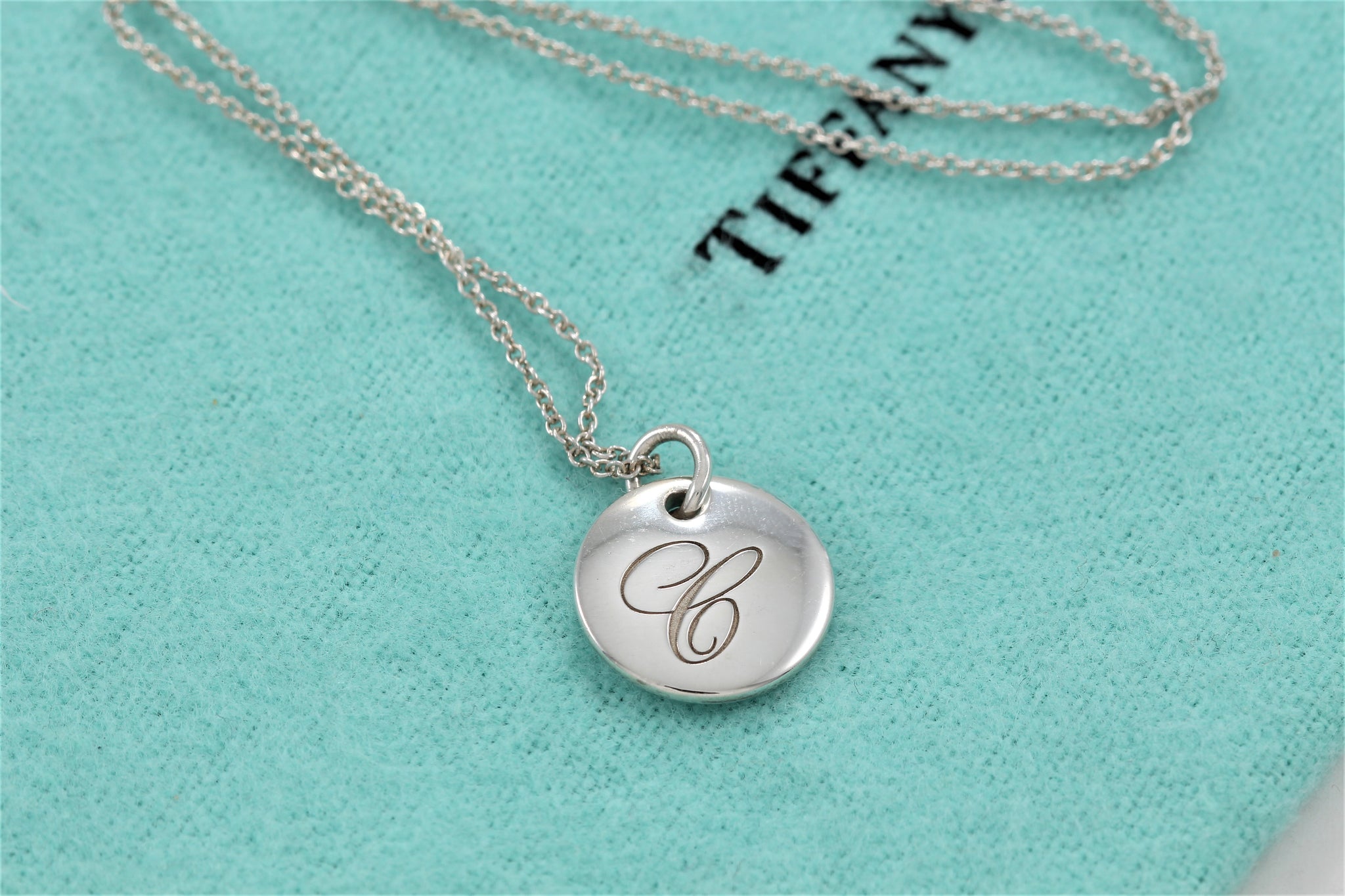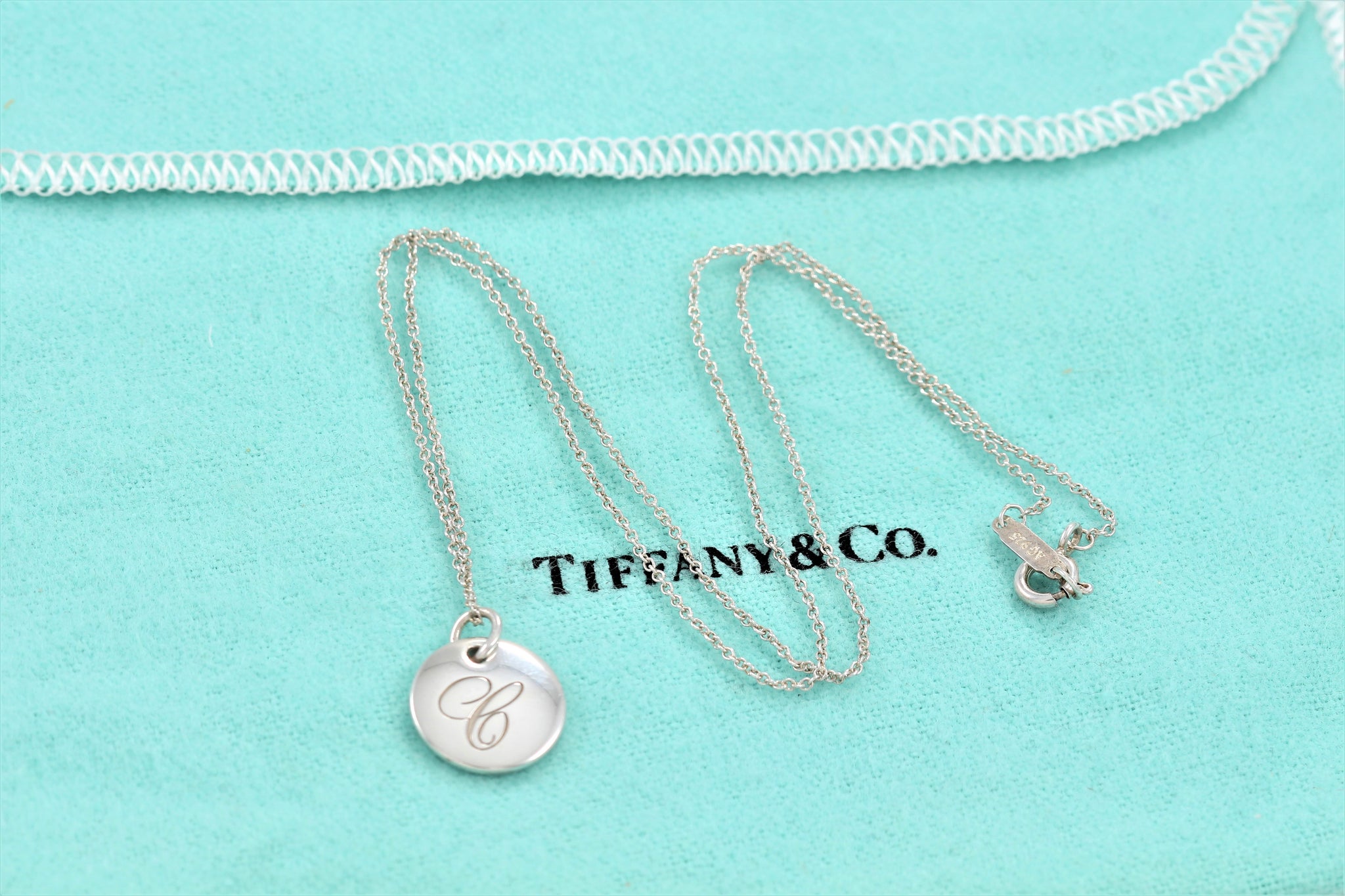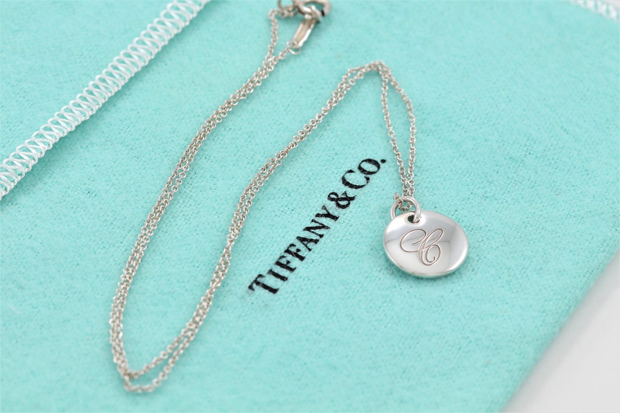 Tiffany & Co. Silver Small Letter ''B'' Disc Pendant Necklace YOURS