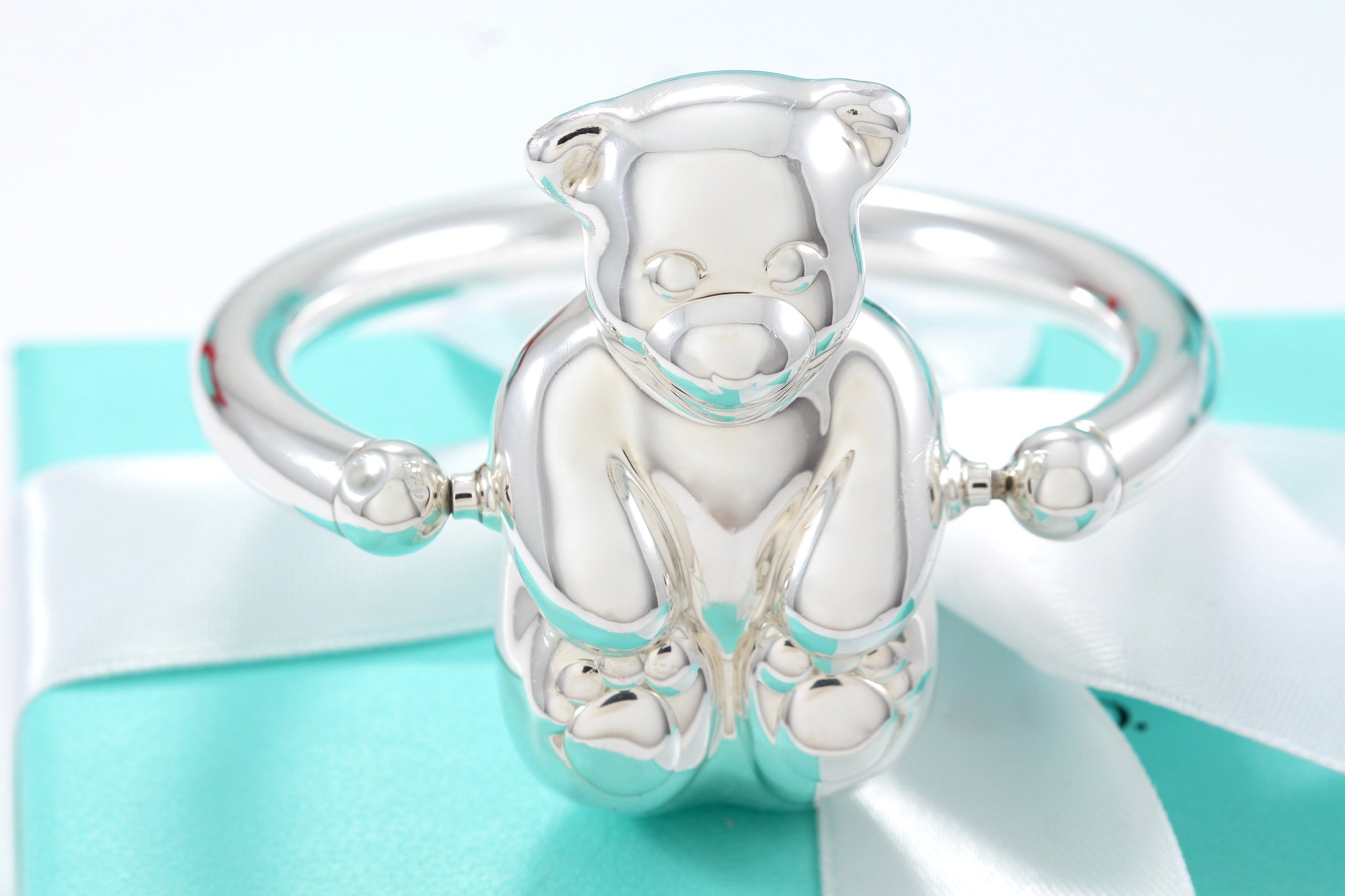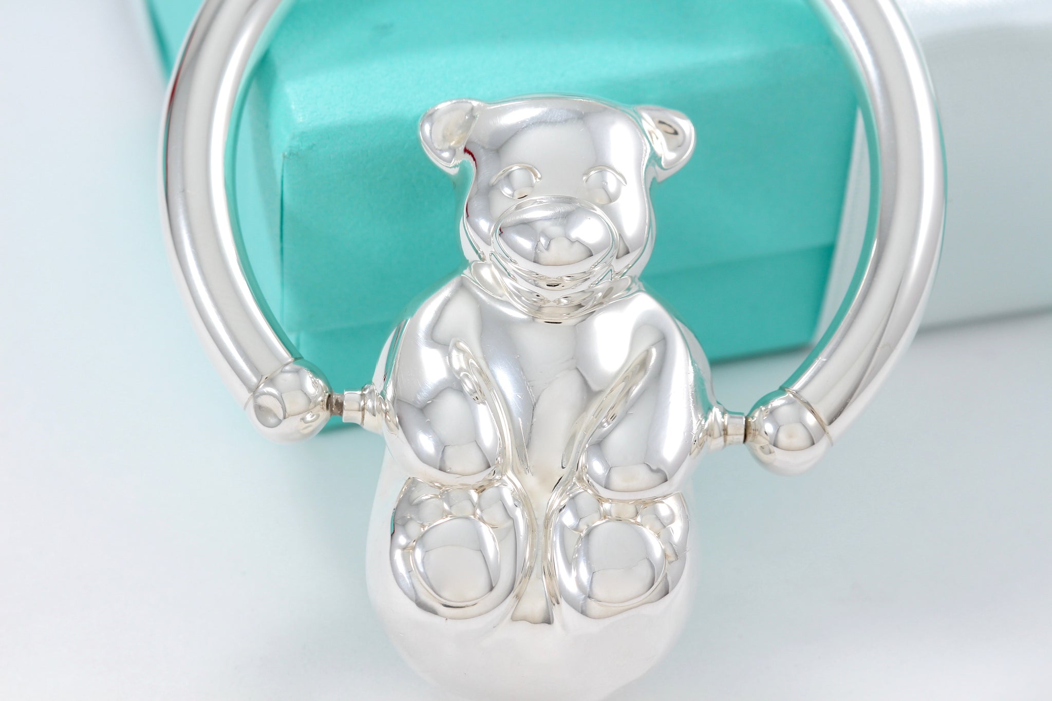 Tiffany & Co. Silver Spinning Bear Baby Rattle 3" Teether