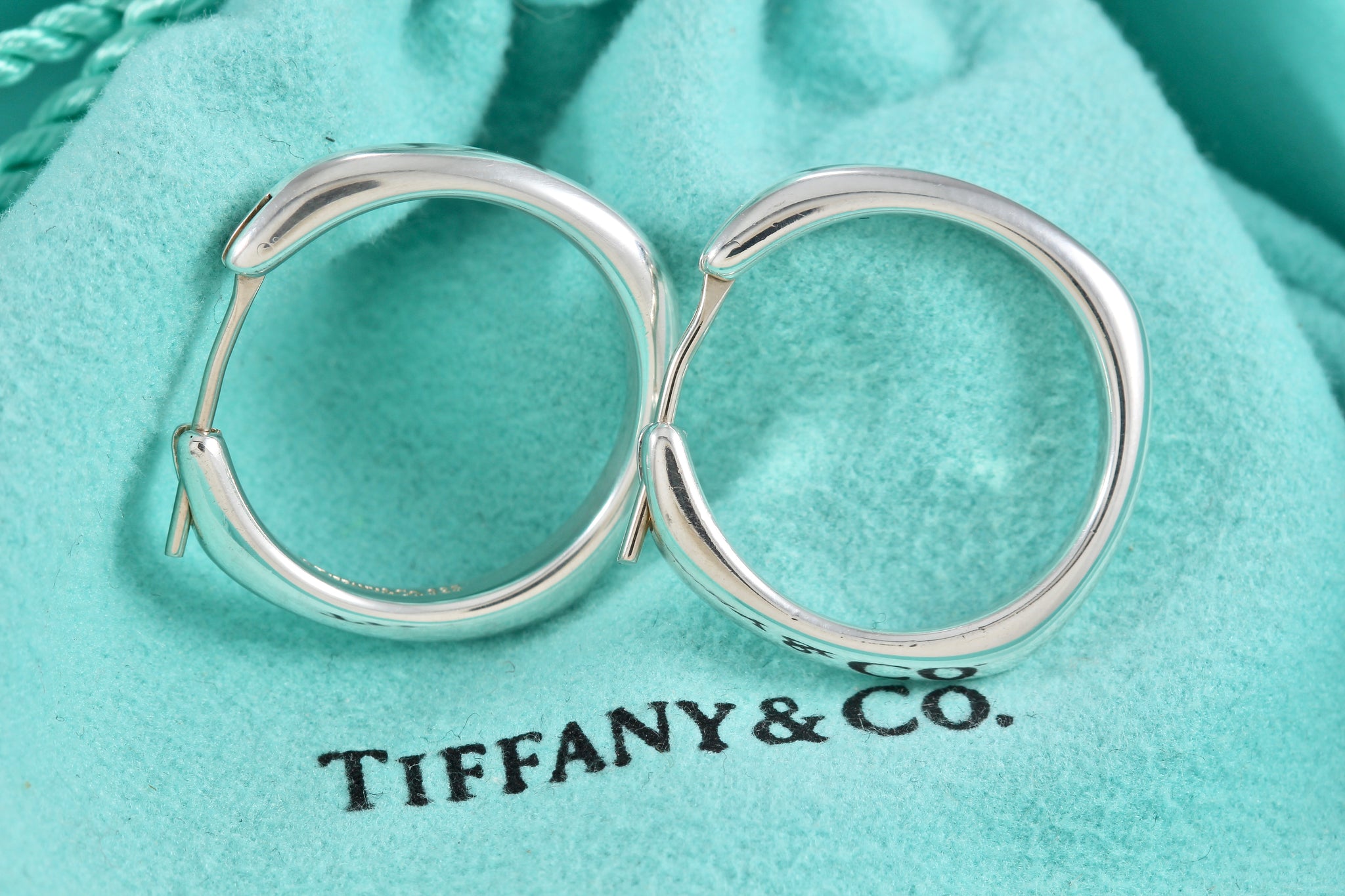 Tiffany & Co. Silver Square Cushion Hoop Earrings