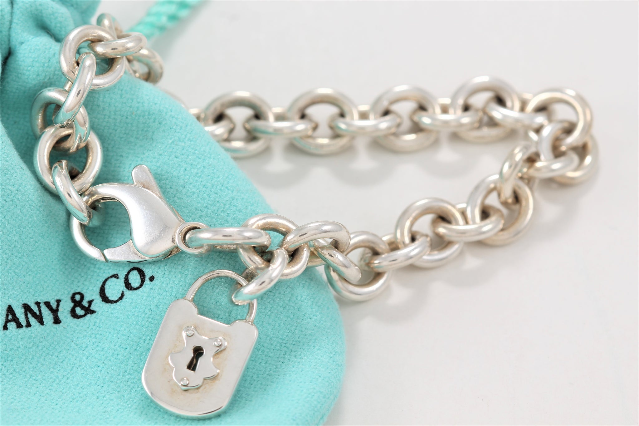 Tiffany & Co. Silver Wavy Textured Keyhole Padlock Charm 7.5" Bracelet