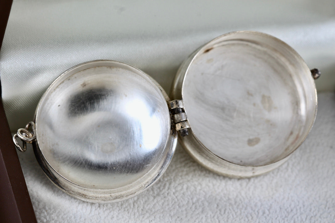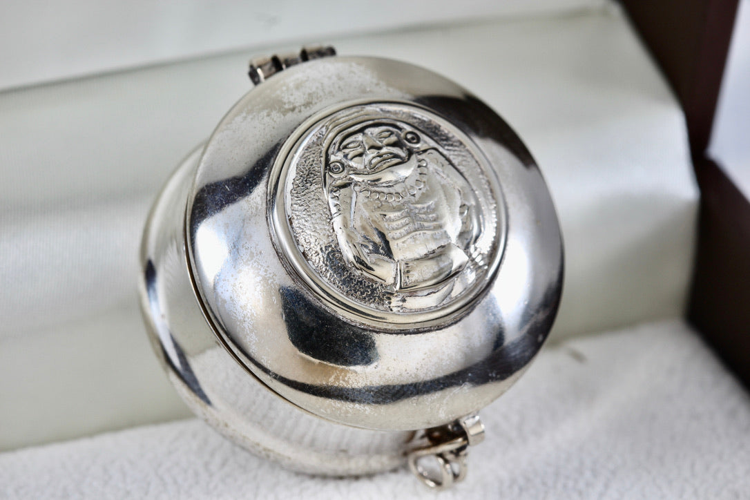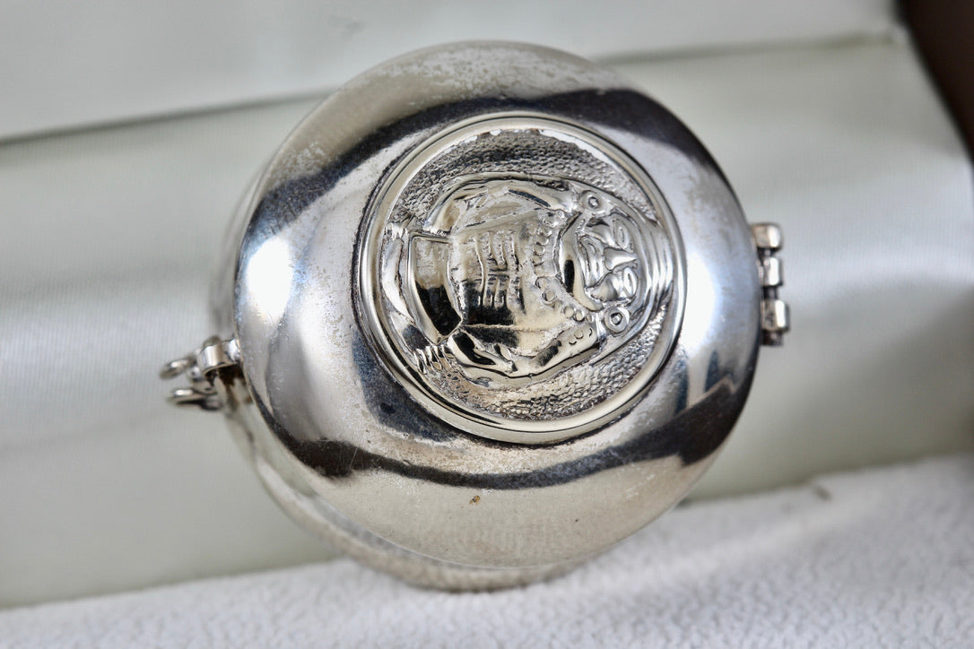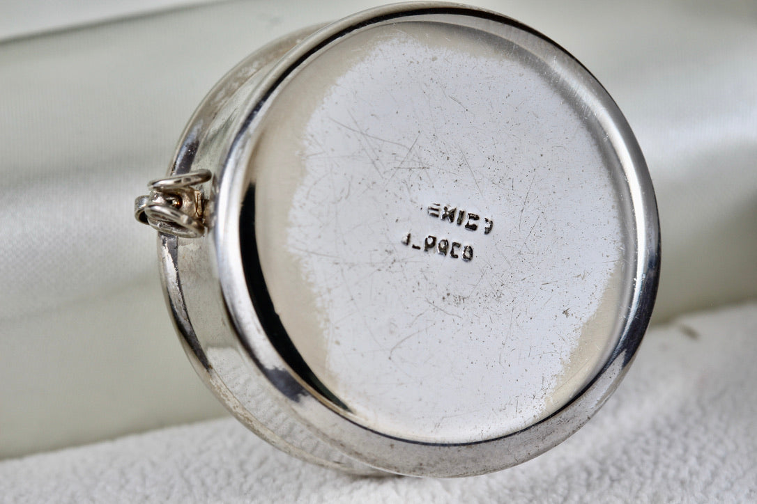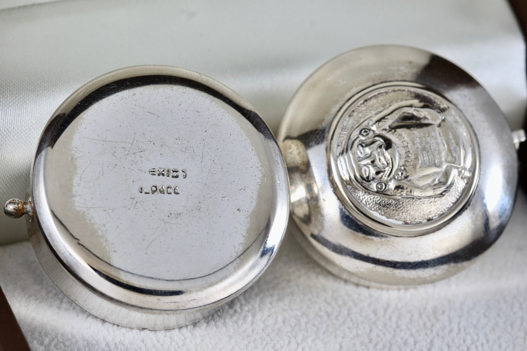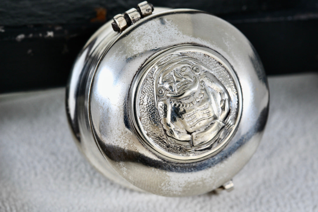 Vintage Silver Mexico ALPACA Mayan Indian Warrior Round Pill Box Trinket